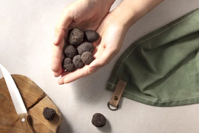 Самый редкий и дорогой вид. Яркий вкус с нотками чеснока и пармезана. Используется свежим — в тонких слайсах.
